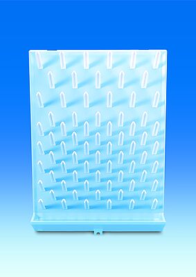 In addition, 11 pegs (95 x 6 mm) are included for objects having a smaller diameter, such as reagent tubes.