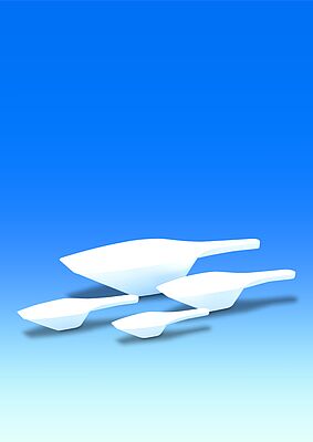 White. Also suitable as weighing scoops. With precision formed filling edge and comfortable, stable handle. Easily readable volume quantities on the upper side of the handle.